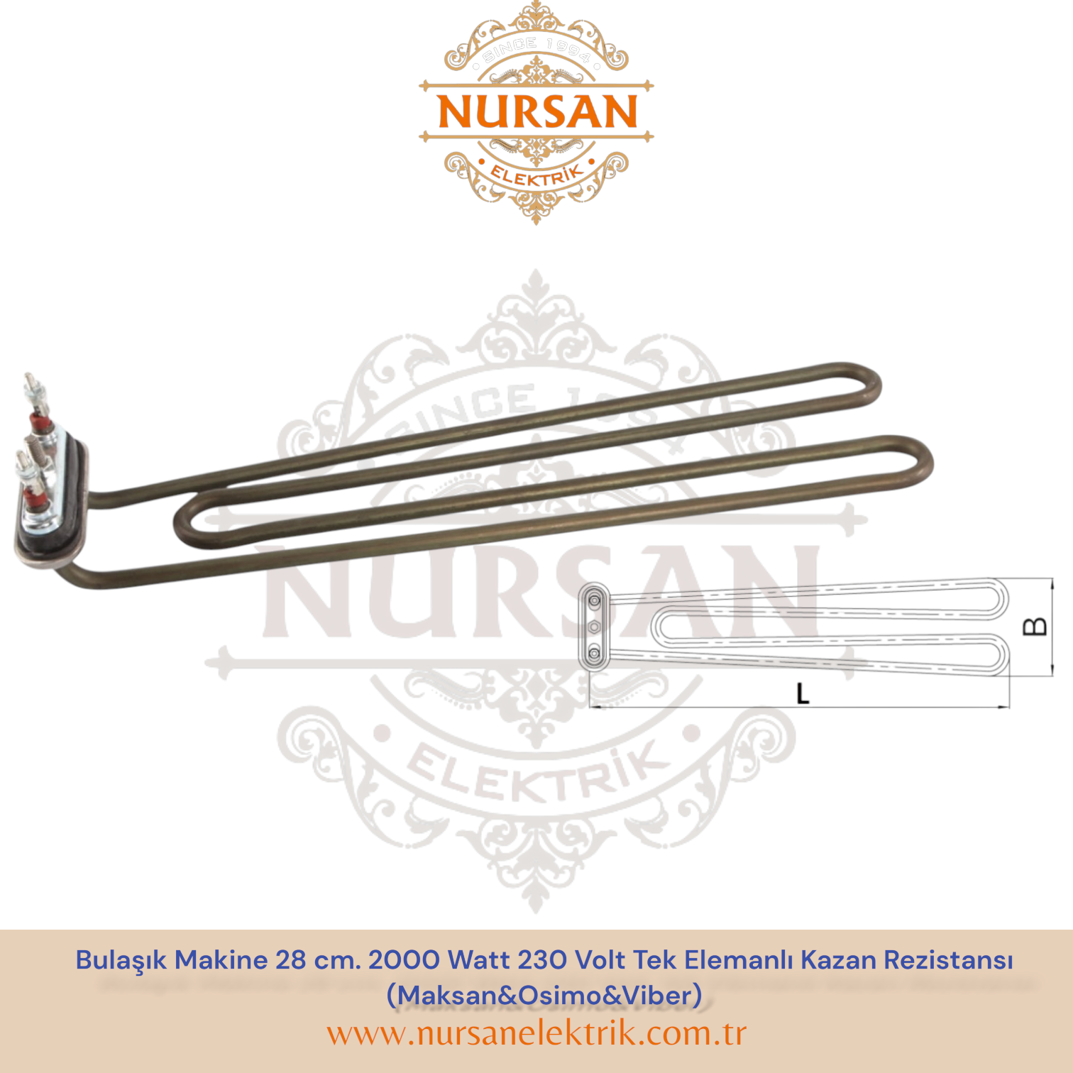 Bulaşık Makine 28 cm. 2000 Watt 230 Volt Tek Elemanlı Kazan Rezistansı
