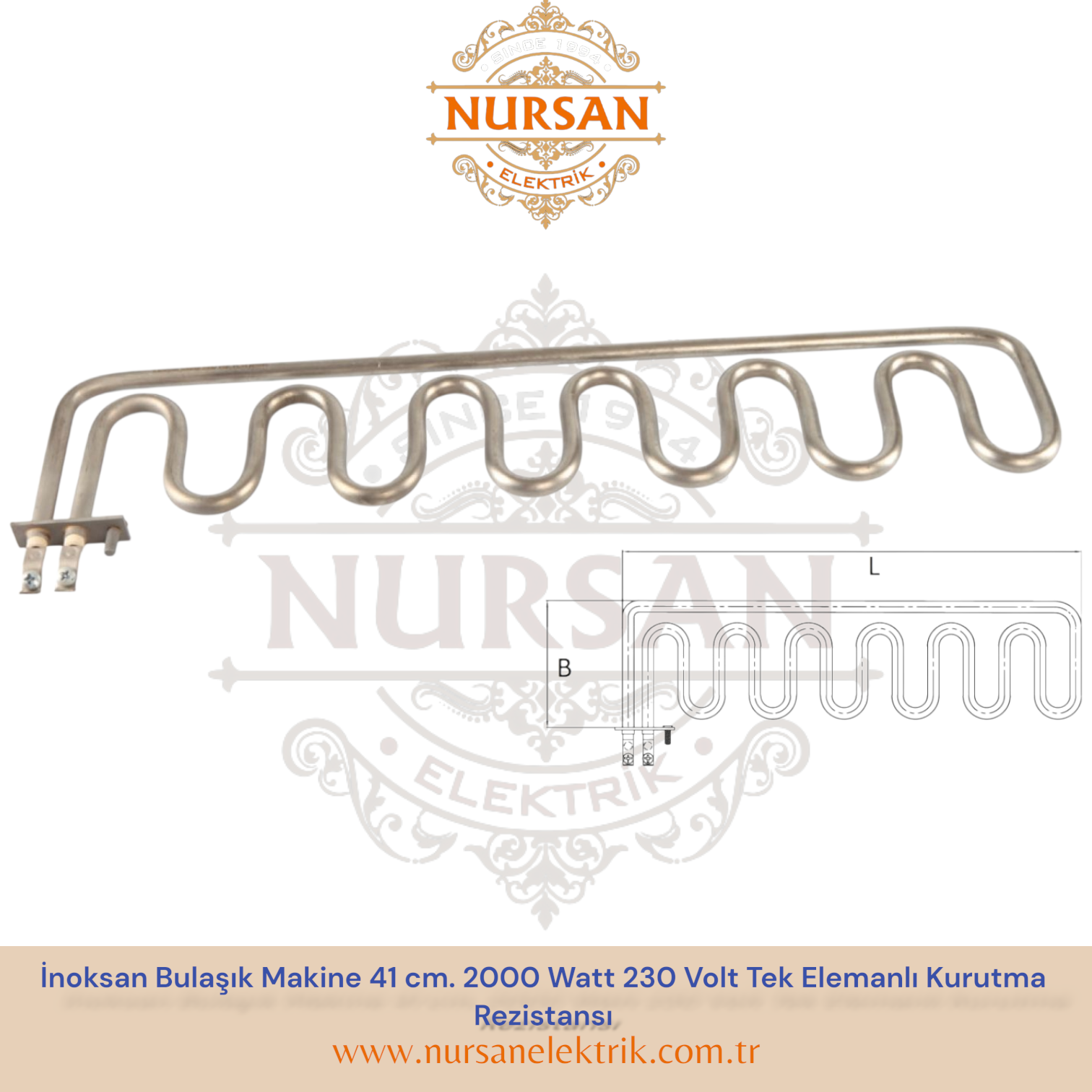 İnoksan Bulaşık Makine 41 cm. 2000 Watt 230 Volt Tek Elemanlı Kurutma Rezistansı Teknik Isısan Upi R2018-1P