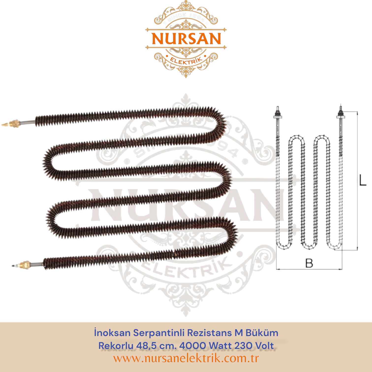 İnoksan Serpantinli Rezistans M Büküm Rekorlu 48,5 cm. 4000 Watt 230 Volt