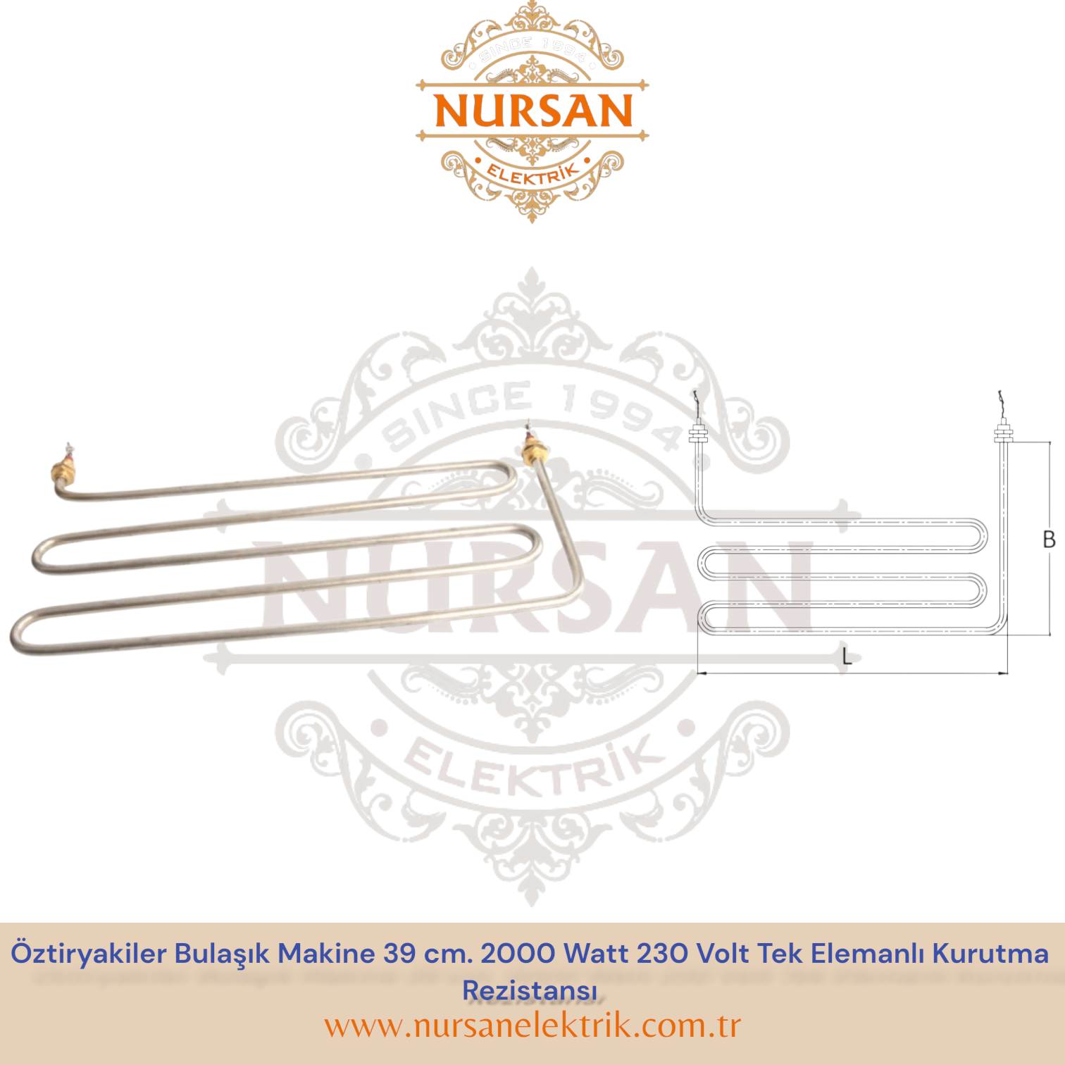 Öztiryakiler Bulaşık Makine 39 cm. 2000 Watt 230 Volt Tek Elemanlı Kurutma Rezistansı Teknik Isısan R2051