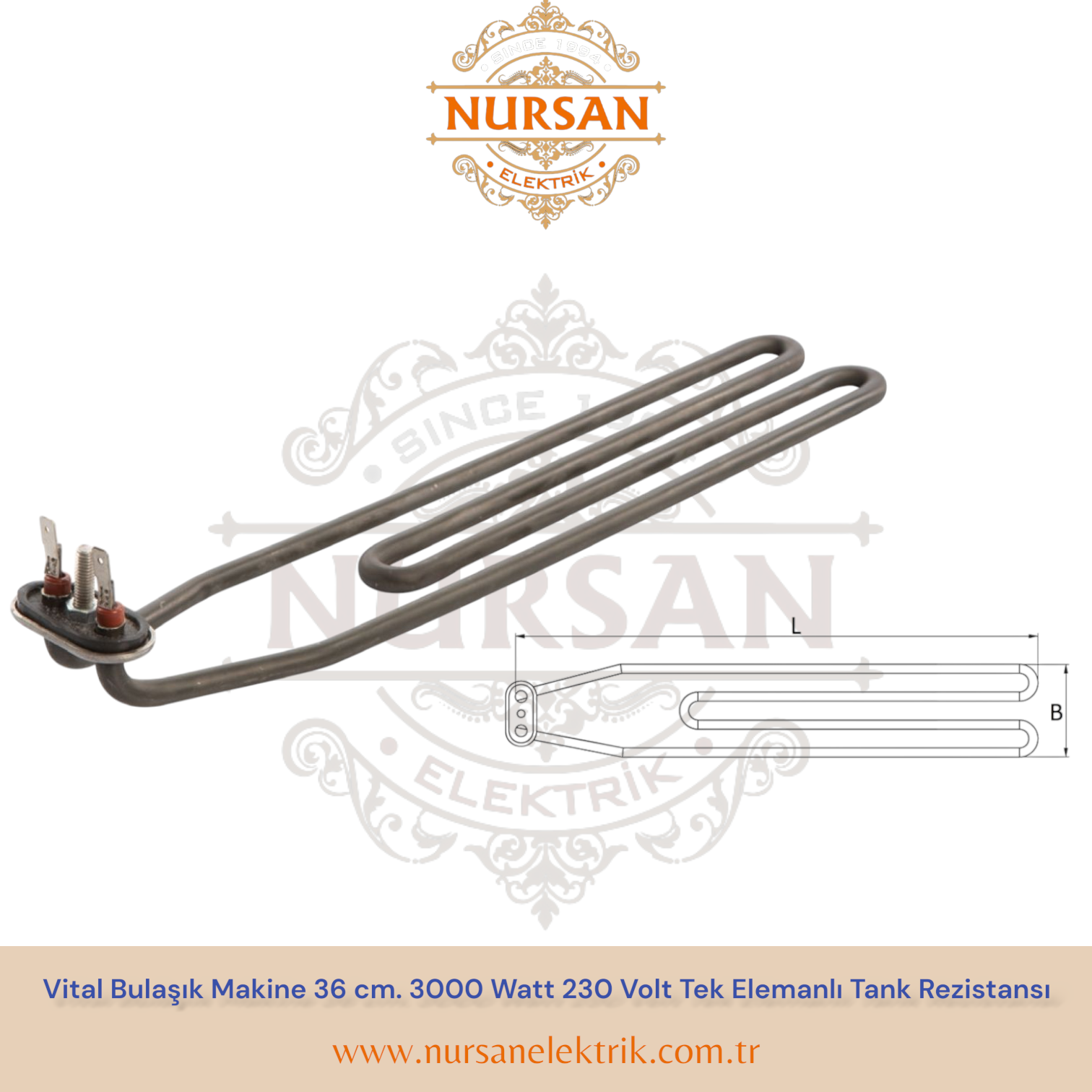 Vital Bulaşık Makine 36 cm. 3000 Watt 230 Volt Tek Elemanlı Tank Rezistansı Teknik Isısan Upi R5131-1P
